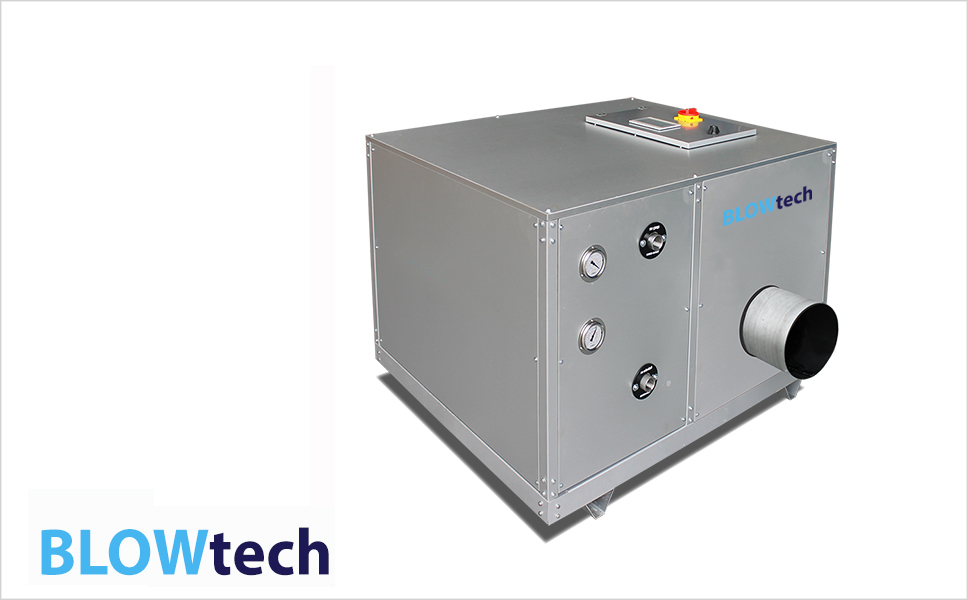 Blow series air cooling chiller units can reduce the inlet air temperature down to 50C. Unit can control the temperature within +/- 0,5 0C accuracy. Low air inlet temperature is provided by means of refrigerant and cooling compressor. By installing Blowtech units you can increase production output by %20 or more. Blowtech units are more efficient and has low energy consumption than air cooling heat exchanger units.